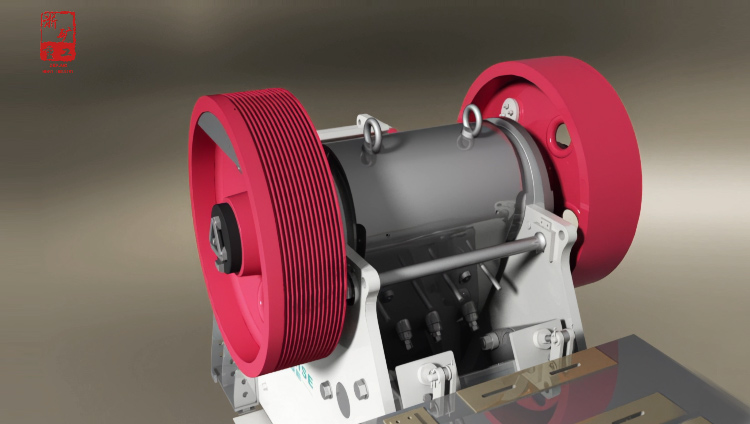 CJ系列顎式破碎機(jī)工作時(shí)采用的是曲動(dòng)擠壓型的工作方式,電動(dòng)機(jī)驅(qū)動(dòng)皮帶輪傳動(dòng),通過(guò)偏心軸使動(dòng)顎前后上下運(yùn)動(dòng)。當(dāng)動(dòng)顎上升時(shí),肘板與動(dòng)顎間夾角變大,從而推動(dòng)動(dòng)顎板向固定顎板接近,同時(shí)物料被壓碎或劈碎,達(dá)到破碎的目的;當(dāng)動(dòng)顎下行時(shí),肘板與動(dòng)顎夾角變小,動(dòng)顎板在拉桿和彈簧的作用下,離開(kāi)固定顎板,此時(shí)已破碎物料從破碎腔下口排出。隨著電動(dòng)機(jī)連續(xù)轉(zhuǎn)動(dòng),破碎機(jī)動(dòng)顎作周期運(yùn)動(dòng)壓碎和排出物料,實(shí)現(xiàn)連續(xù)生產(chǎn)。